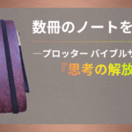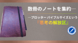 A5サイズは、思考の流れを“動画”のように記録できるフィールドです。M5が断片を切り取る写真、バイブルが構造を描く一眼レフだとすれば、A5は思考の揺れや迷い、余白までも残す“フィルム映写機”のような媒体です。単なる筆記空間ではなく、思考の経路そのものが保存される点に、A5の決定的な価値があります。